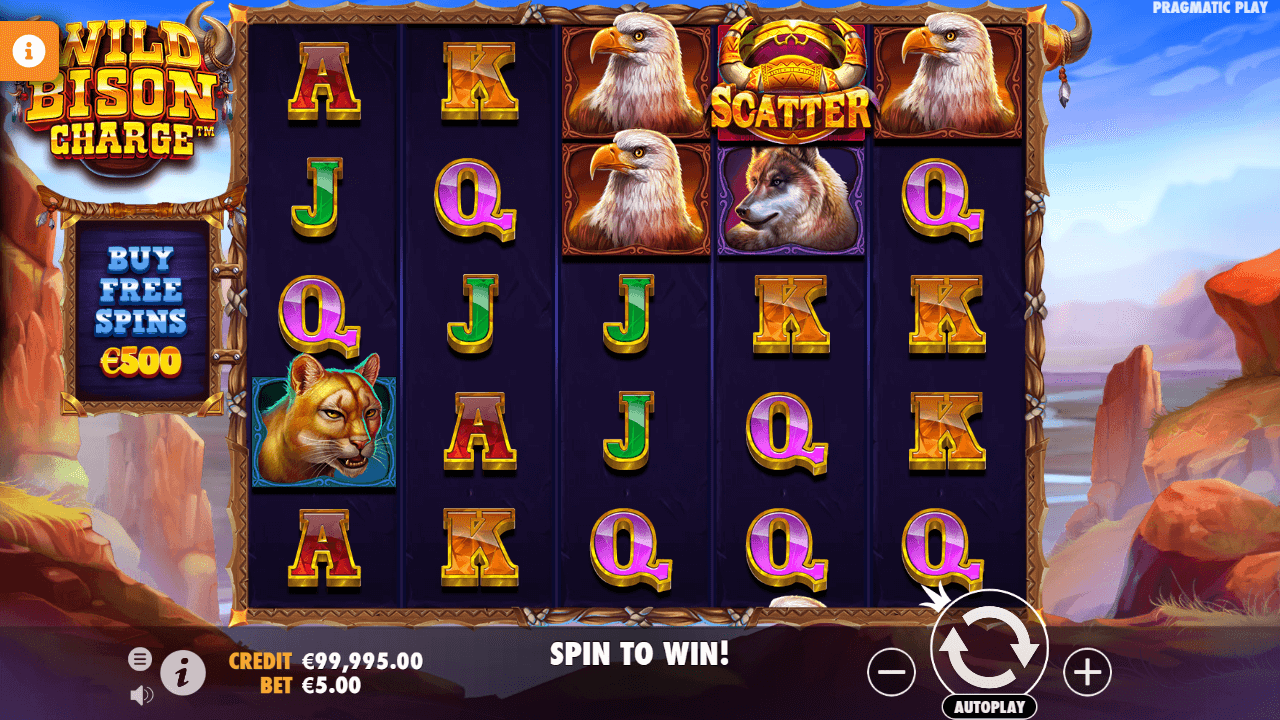 Voor het activeren van de gratis spins feature van Wild Bison Charge zul je scatters moeten draaien.